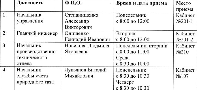 6. График приёма граждан руководством УГГ