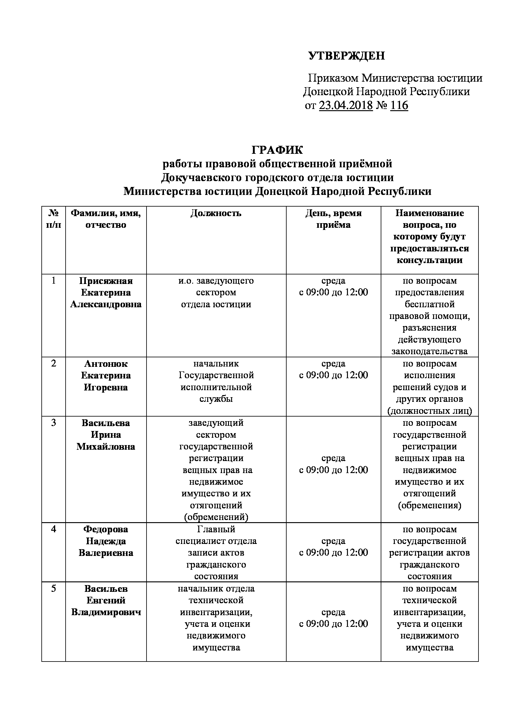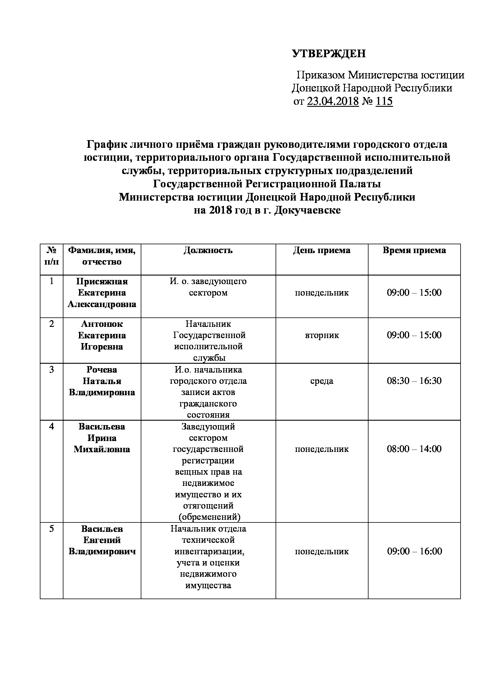 7. График личного приёма граждан в Докучаевском городском центре занятости на 2018 год