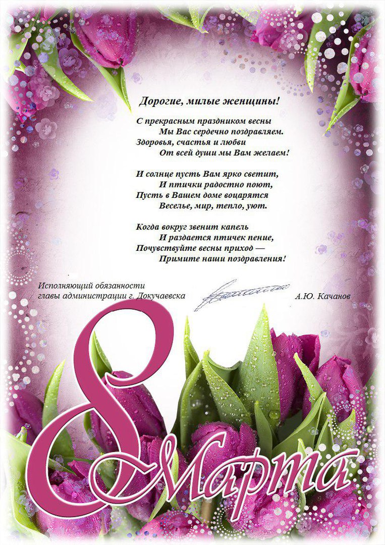 С концертными номерами выступили воспитанники школы им. Переяславских, ЦКД им. Пушкина. Для представительниц слабого пола звучали самые добрые, искренние и нежные слова. Сотни девушек и женщин смогли получить неописуемый заряд праздничного настроения, подаренного творческими коллективами города. Все артисты вложили в выступления свою душу и мастерство, дарили свои объятия, ул