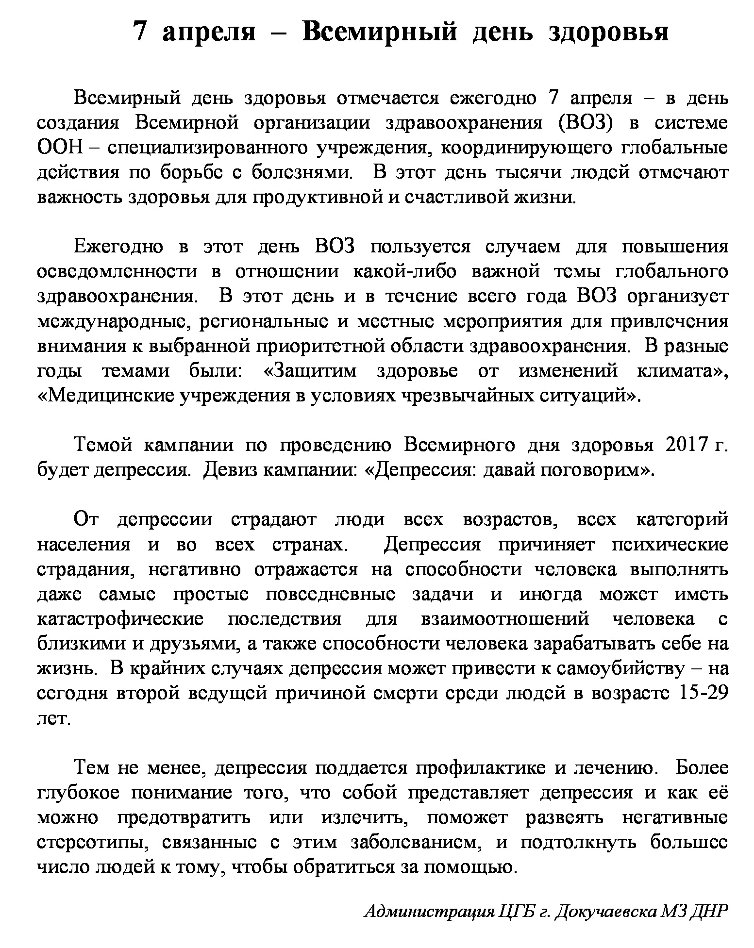 7 апреля - Всемирный день здоровья