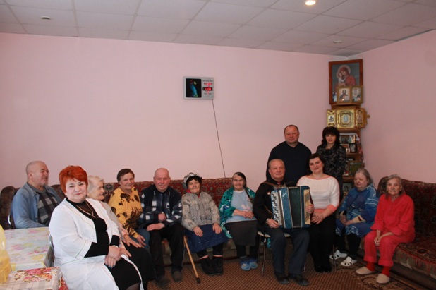Не остались без внимания и одинокие старики, которые проживают в доме-интернате «Ветеран». Силами солистов хора «Ветеран» Свешниковой Александры Ивановны, Беспаловой Нины Владимировны и участницей детской самодеятельности Внуковой Елизаветы под руководством руководителя творческого отделения ОО «Молодая Республика» Париенко Виктории Геннадиевны и бессменного аккомпаниатора Челакова Василия Алексеевича вниманию пенсионеров был представлен концерт. С огромным удовольствием они прослушали песни в исполнении самодеятельных артистов, подпевая им. Для ветеранов труда активисты Докучаевского отделения общественного движения «Донецкая Республика» приготовили сладкие угощения к чаю. Жители и сотрудники интерната с теплотой благодарили участников концерта