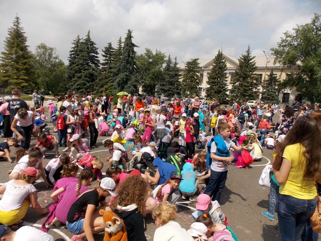 Почти в это же время на площади проходило другое детское мероприятие – городской праздник, посвященный Дню защиты детей и открытию пришкольных лагерей. Праздник получился ярким и насыщенным: по окончанию небольшого концерта деткам было предложено нарисовать свой мир на асфальте. И здесь уже все постарались, кто как мог! По окончанию мероприятия уставших, но довольных детей организаторы пригласили в зал Центра культуры и досуга на просмотр любимых мультиков.