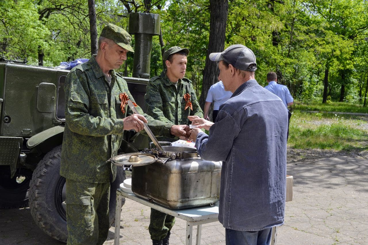 В среду, 9 мая 2018 г., в рамках долгосрочного проекта Общественного движения «Донецкая Республика» «Эхо времён», по инициативе МО ОД «ДР» города Докучаевска, была организована полевая кухня, которая как нельзя лучше передавала атмосферу военных лет.