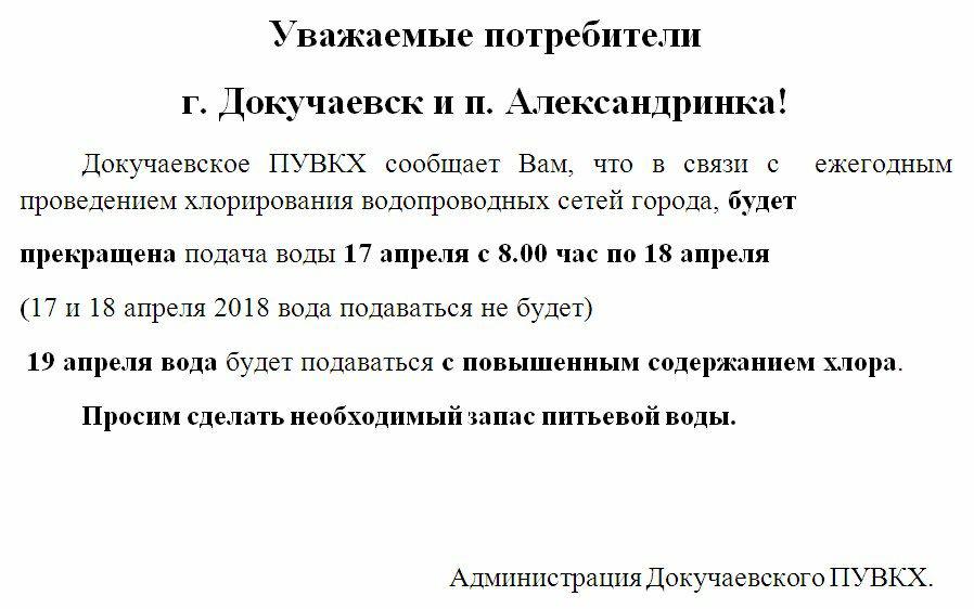 12:05 Ежегодное хлорирование водопроводных сетей Докучаевска и Александринки | |