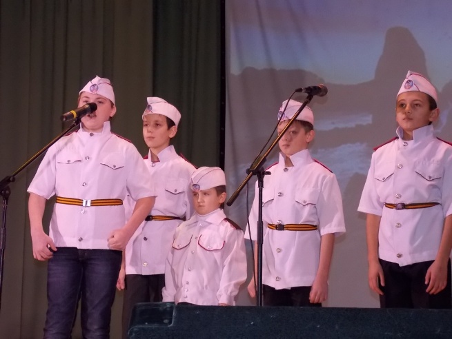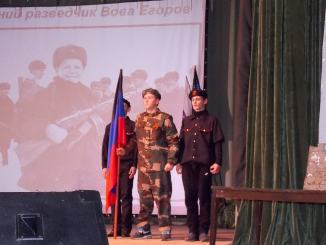 Бурю аплодисментов вызвало выступление бойцов армии Донецкой Народной Республики, стоящих на рубежах вокруг нашего города – помощника коменданта Старобешевского военного округа Э. Коваленко и бойца подразделения «Мираж» С. Павлия. Зал поднялся с овациями, когда на сцену, символизируя преемственность защитников Родины, вышел освободитель Донбасса, фронтовик, участник Великой Отечественной войны В.Н. Хлапов. На высокой ноте патриотизма, искреннего уважения к героям родной земли, защищавшим Родину ценой своей крови и жизни, прошел концерт. За это выражаем большую благодарность всем коллективам, выступавшим на сцене, и особо благодарим казачат из одноименного творческого объединения и их руководителя Л.П. Зяблову.