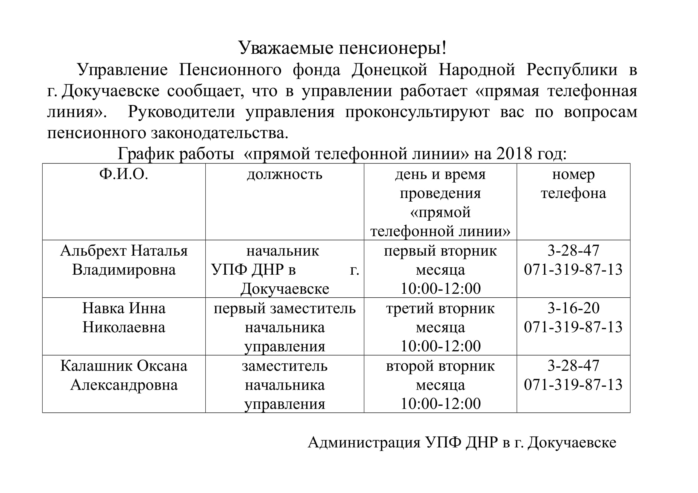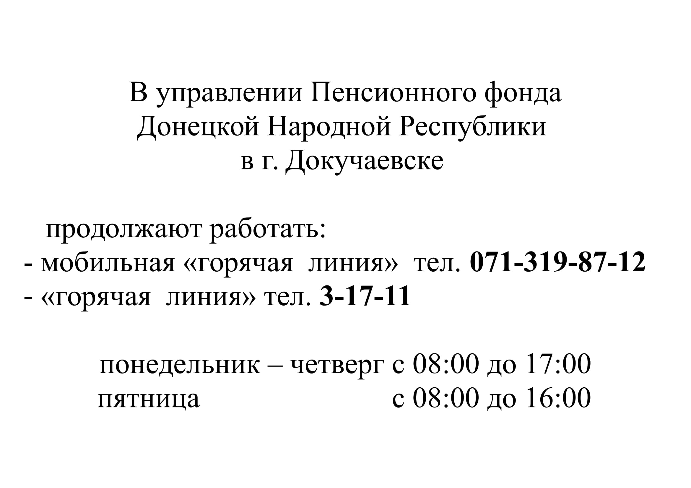 11:21 Горячие телефонные линии Управления ПФ ДНР в г. Докучаевске | |