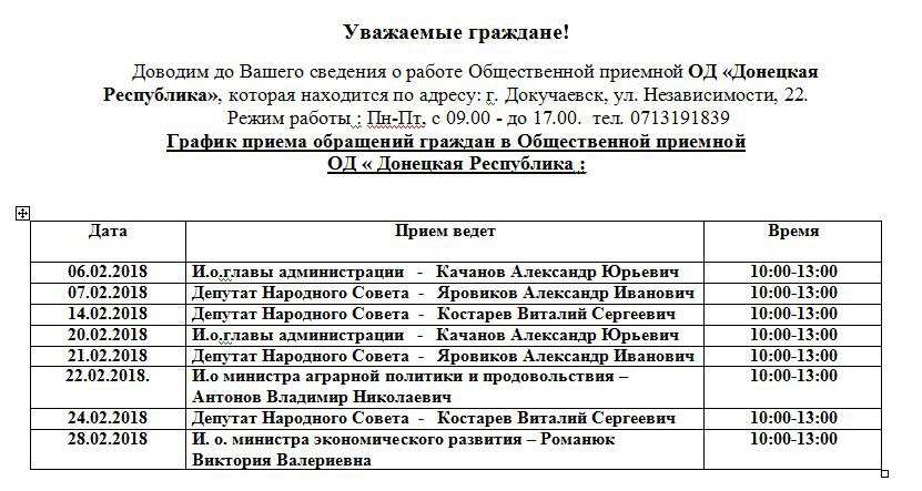 17:42 График приёма обращений граждан в Общественной приёмной ОД "Донецкая Республика" | |