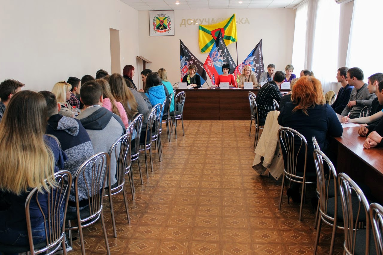 В работе круглого стола приняли участие секретарь местного отделения ОД «ДР», заместитель главы Юлия Хижняк, и. о. начальника отдела образования Кириченко Виктория Валерьевна, директор Докучаевского городского ЦЗ Ткаченко Светлана Борисовна, директор Докучаевского горного техникума Кустов Владимир Васильевич, председатель первичной профсоюзной организации ГП «ДФДК» Гордиенко Артём Сергеевич, руководитель подразделения по трудоустройству выпускников Докучаевского торгового техникума Кищенко Наталья Михайловна, секретари первичных организаций МО ОД «ДР», выпускники торгового и горного техникумов, выпускники школ. «Сегодня мы собрались обсудить очень важный и актуальный вопрос — трудоустройство выпускников учебных заведений. Молодое поколение – это потенциал, который ни в коем случае нельзя бросать на произвол судьбы или же игнорировать в силу его малого опыта или отсутствия такового. Нужно дать шанс приобрести профессию и в дальнейшем найти работу по специальности. Они – будущее нашей Республики! Надеюсь, что сегодняшнее обсуждение будет активным и результативным», — открывая мероприятия, заявила секретарь местного отделения ОД «ДР», заместитель главы Юлия Хижняк. «Отдаю должное нашей молодёжи, они патриоты своей Земли. В такое тяжёлое время они здесь живут и строят свою судьбу. Это наш золотой фонд! Поэтому затронутые вопросы, в плане подготовки специалистов и последующего трудоустройства, очень важны. Я считаю, что только совместными усилиями мы сможем решить все проблемы », — сказал директор горного техникума Кустов Владимир Васильевич.