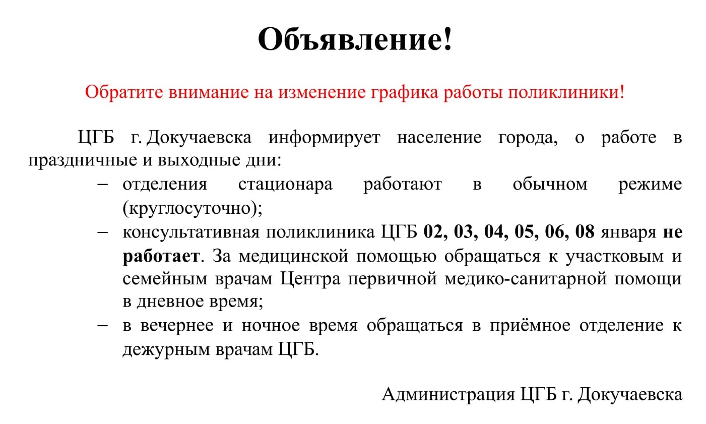 Главная » 2017 » Декабрь » 29 » Медицинская помощь в праздничные дни (уточнено)
