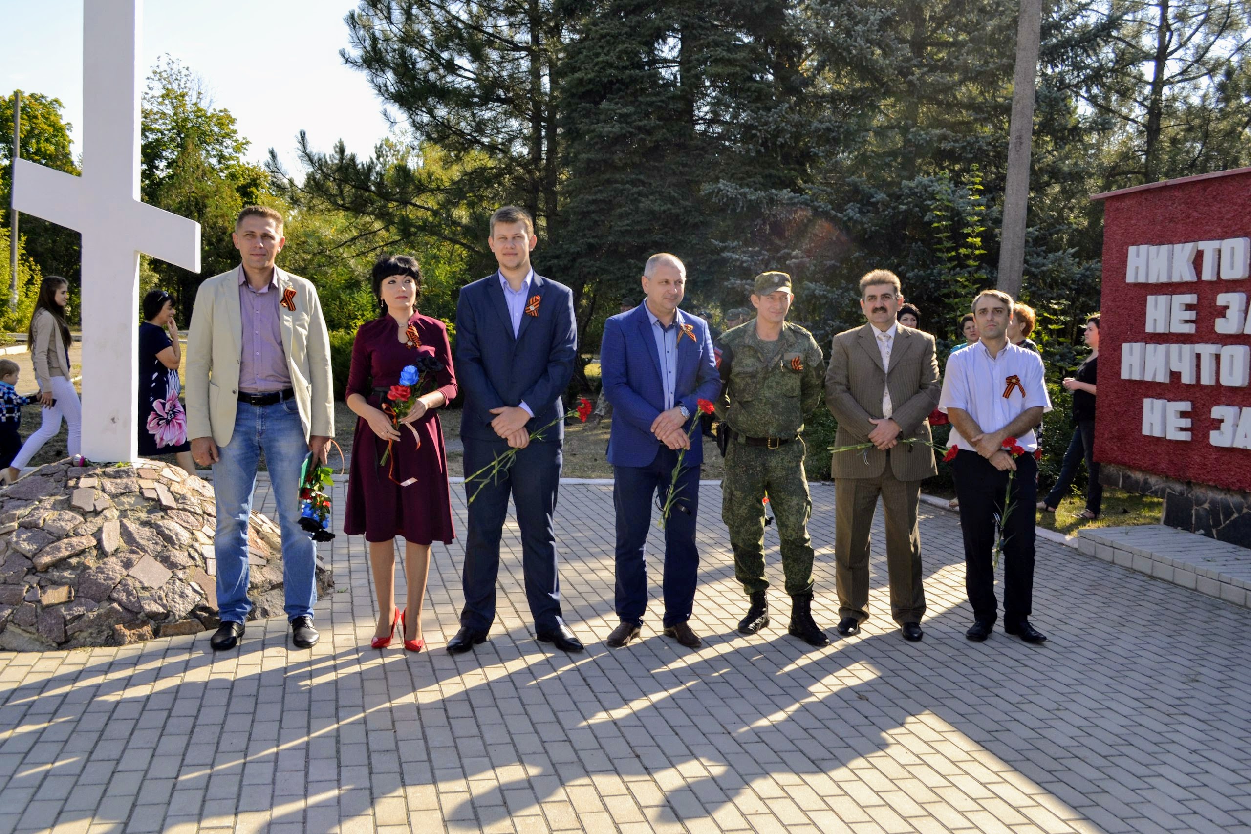 По окончанию торжественного митинга состоялось возложение цветов к памятнику воинам Советской армии.