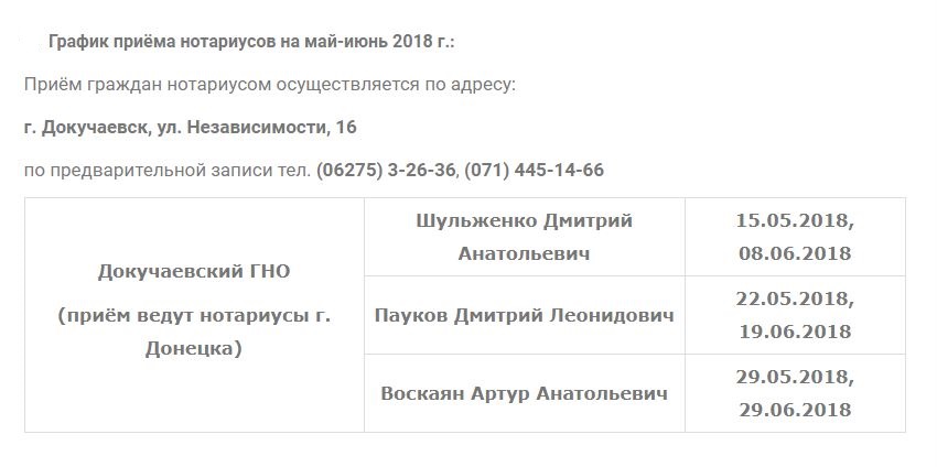 г. Докучаевска МЗ ДНР будет проводиться приём