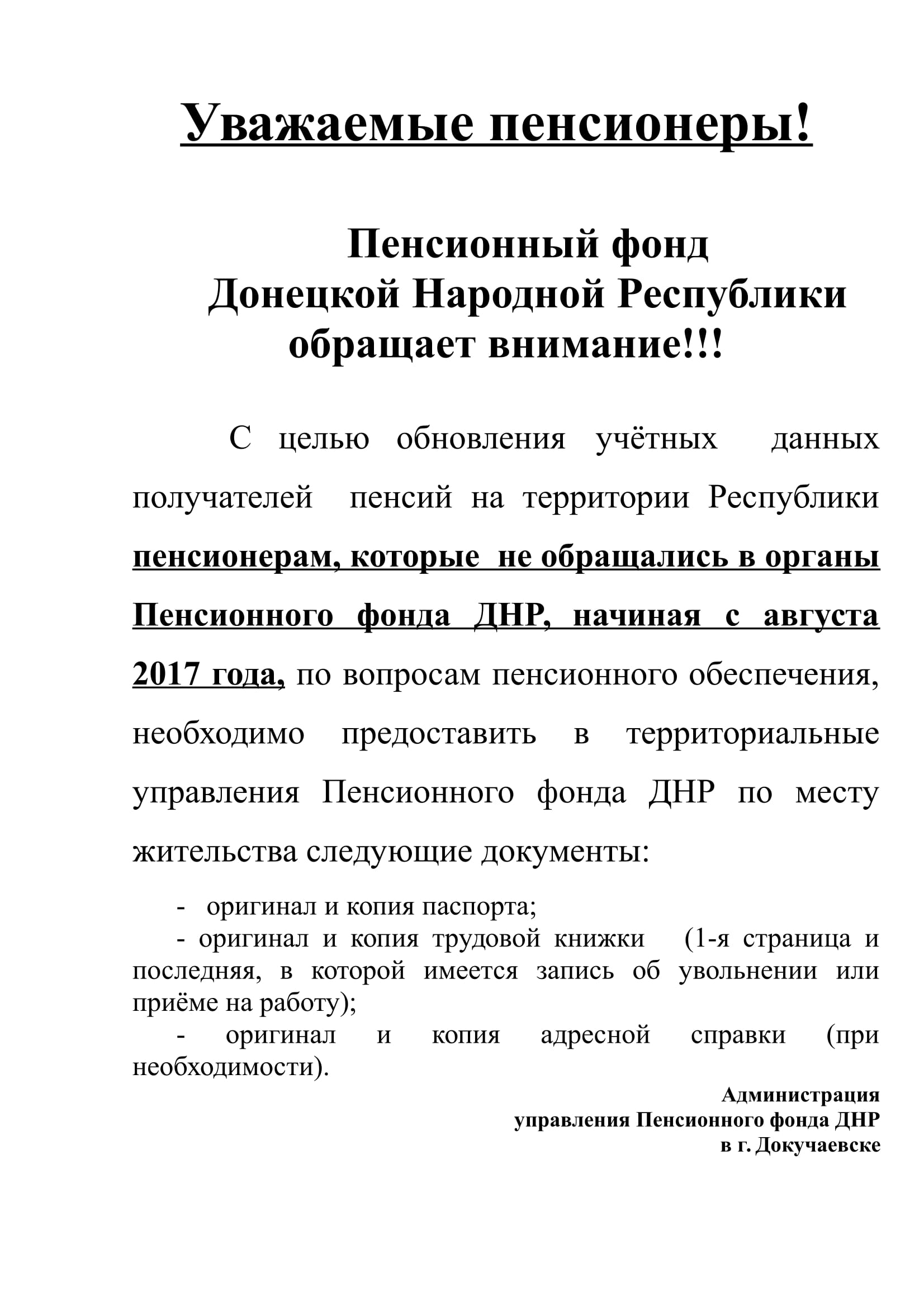 Обновление учётных данных пенсионеров!