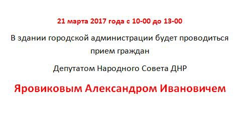 17.05.2017 Депутат Народного Совета – Яровиков Александр Иванович 10.00-13.00