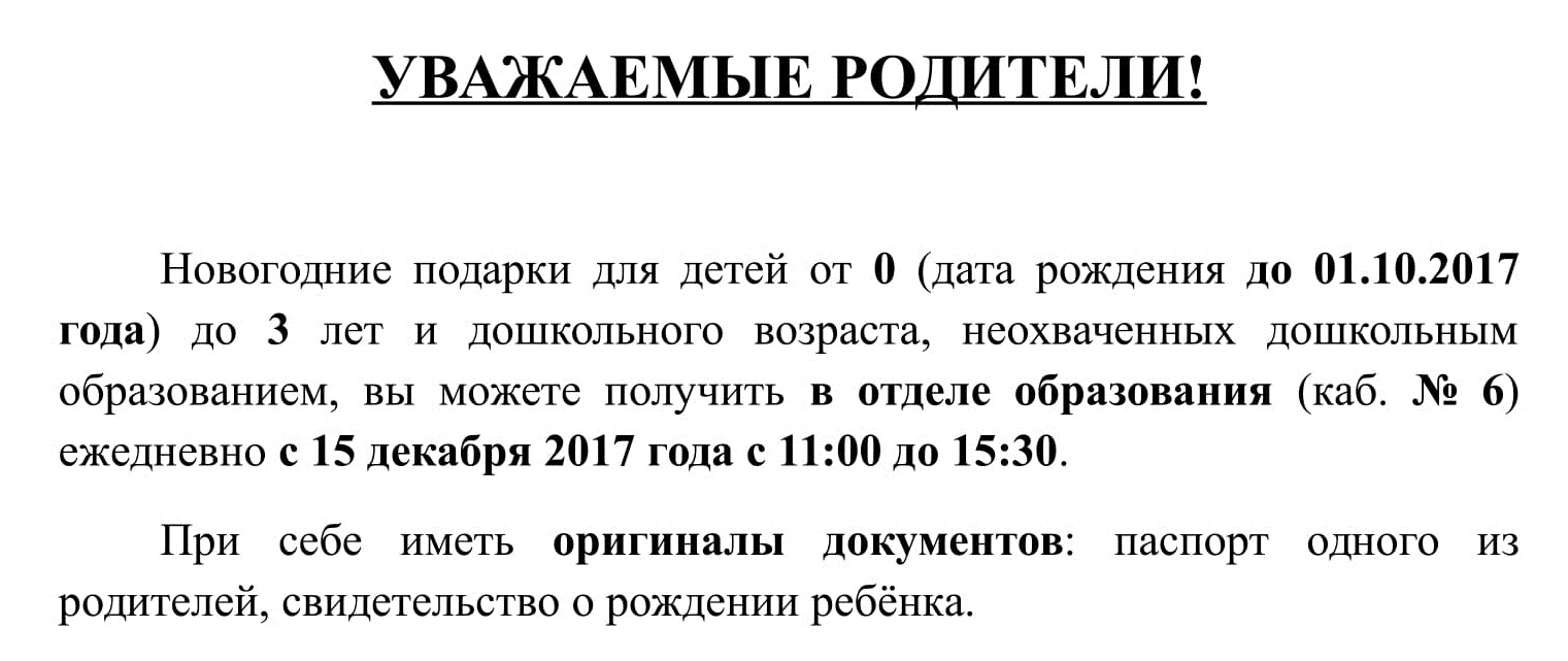 19 января завершается выдача Новогодних подарков от главы Донецкой Народной Республики для всех детей 2011-2017 года рождения (в том числе родившиеся в период с 01.10 по 31.12.2017 года), не посещающих дошкольные учреждения.