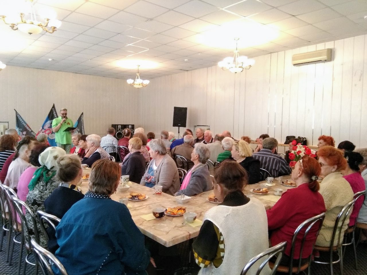 В пятницу, 27 апреля 2018 г., в рамках долгосрочного проекта Общественного движения «Донецкая Республика» «Эхо времён», по инициативе МО ОД «ДР» города Докучаевска в кафе «Мрия» состоялся праздничный концерт для людей пожилого возраста. Это только в молодости жизнь кажется долгой, здоровье неисчерпаемым, а перспективы широкими. С годами, особенно в пожилом возрасте, человек всё больше понимает, что его проблемы навсегда остаются сугубо личными и, в лучшем случае, могут интересовать только близких родственников. Но это не так. Общественное движение «Донецкая Республика» не обошло стороной людей преклонного возраста. Праздник организован, как дань уважения, благодарности к старшему поколению. «Мы искренне уважаем и любим старшее поколение за удивительное трудолюбие, мудрость и неиссякаемый оптимизм, благодарим за желание делиться своим огромным жизненным опытом, за заботу, поддержку и этим мероприятием выражаем свою признательность и благодарность. Желаю вам улыбок, добра и человеческого тепла. Пусть каждый будет одарён вниманием и пониманием родных, заботой и душевностью. Долгих вам лет жизни, здоровья и мира!», – обратился к присутствующим руководитель исполкома Докучаевского отделения ОД «ДР» Алексей Литвин. Праздничную программу подарили творческие коллективы и вокалисты ЦКД им. Пушкина. В зале царила добрая атмосфера, зрители с удовольствием встречали всех выступающих, а по окончании концерта от всего сердца поблагодарили организаторов и участников праздника за внимание, оказанное им в этот замечательный день. После концерта присутствующие были приглашены на чаепитие со сладостями, где за дружеской беседой смогли поделиться своими мыслями.