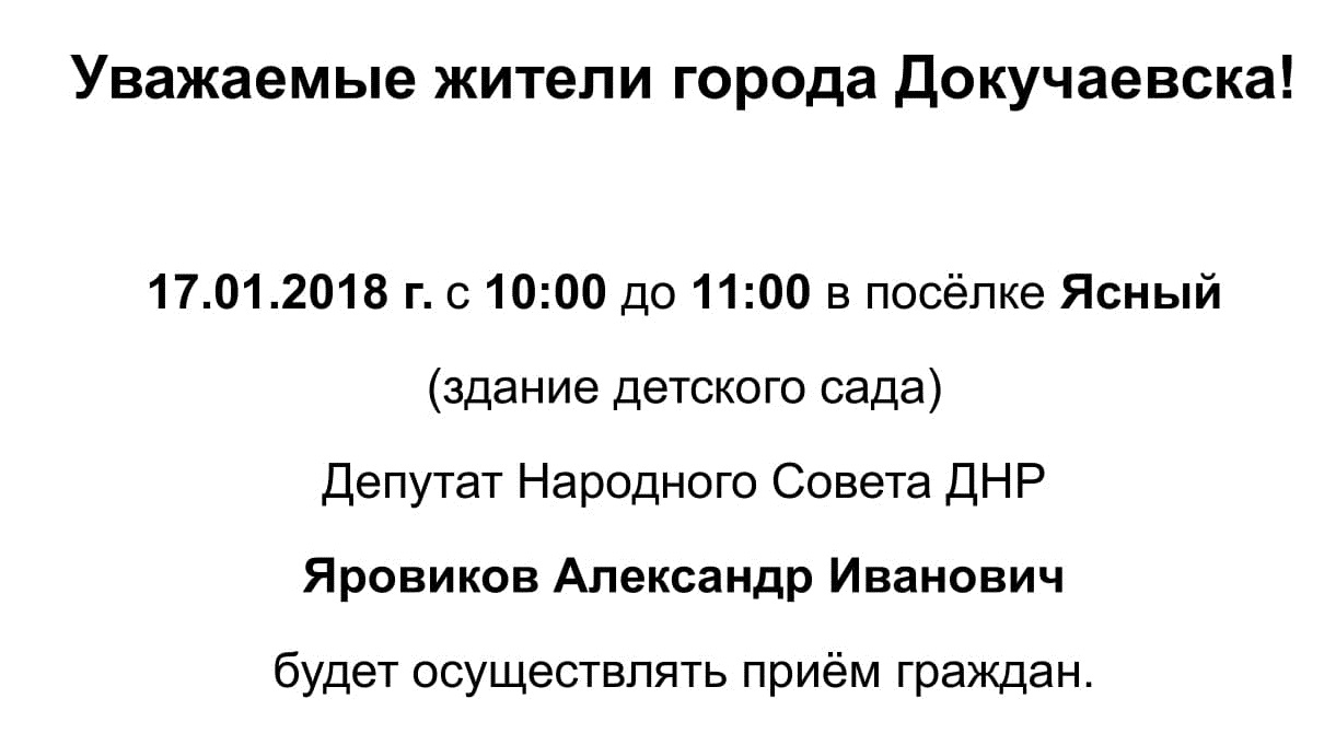 10:29 Приём граждан депутатом НС ДНР в п. Ясный 17.01.2018 | |