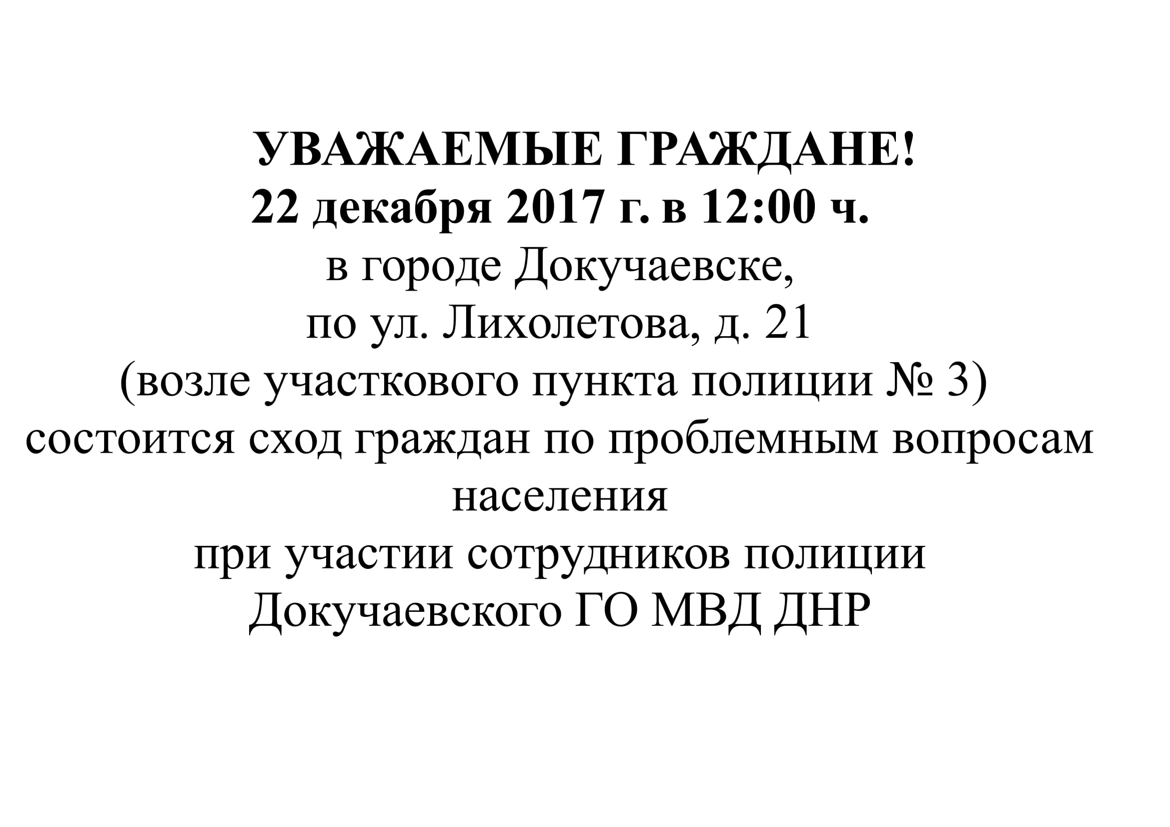 Категория: Докучаевский ГО МВД ДНР | Просмотров: 348 | Добавил: admgOKY4A | Рейтинг: 0.0/0
