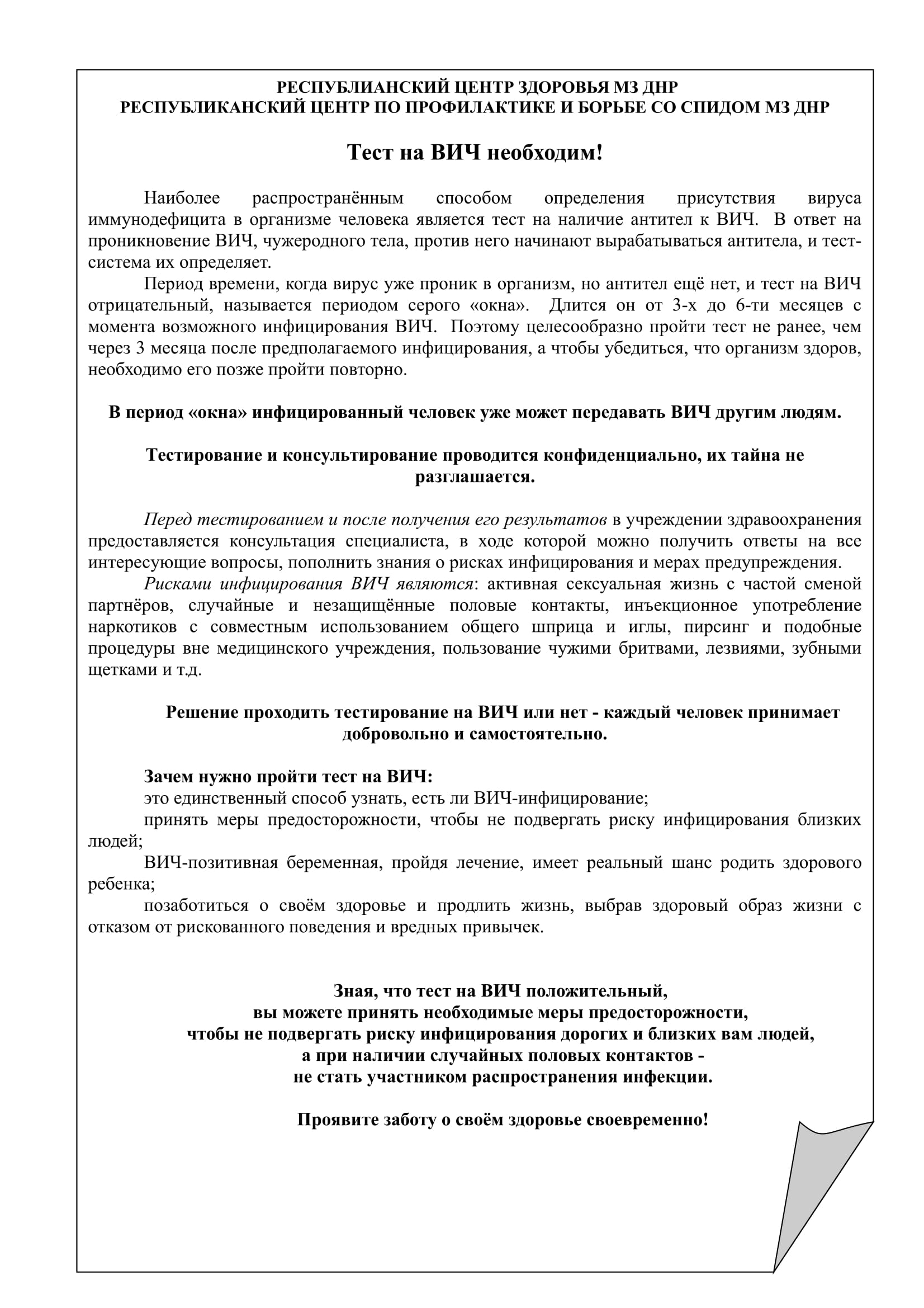 Тест на ВИЧ необходим!