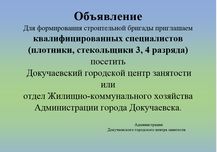 09:45 Требуются: квалифицированные плотники и стекольщики | |