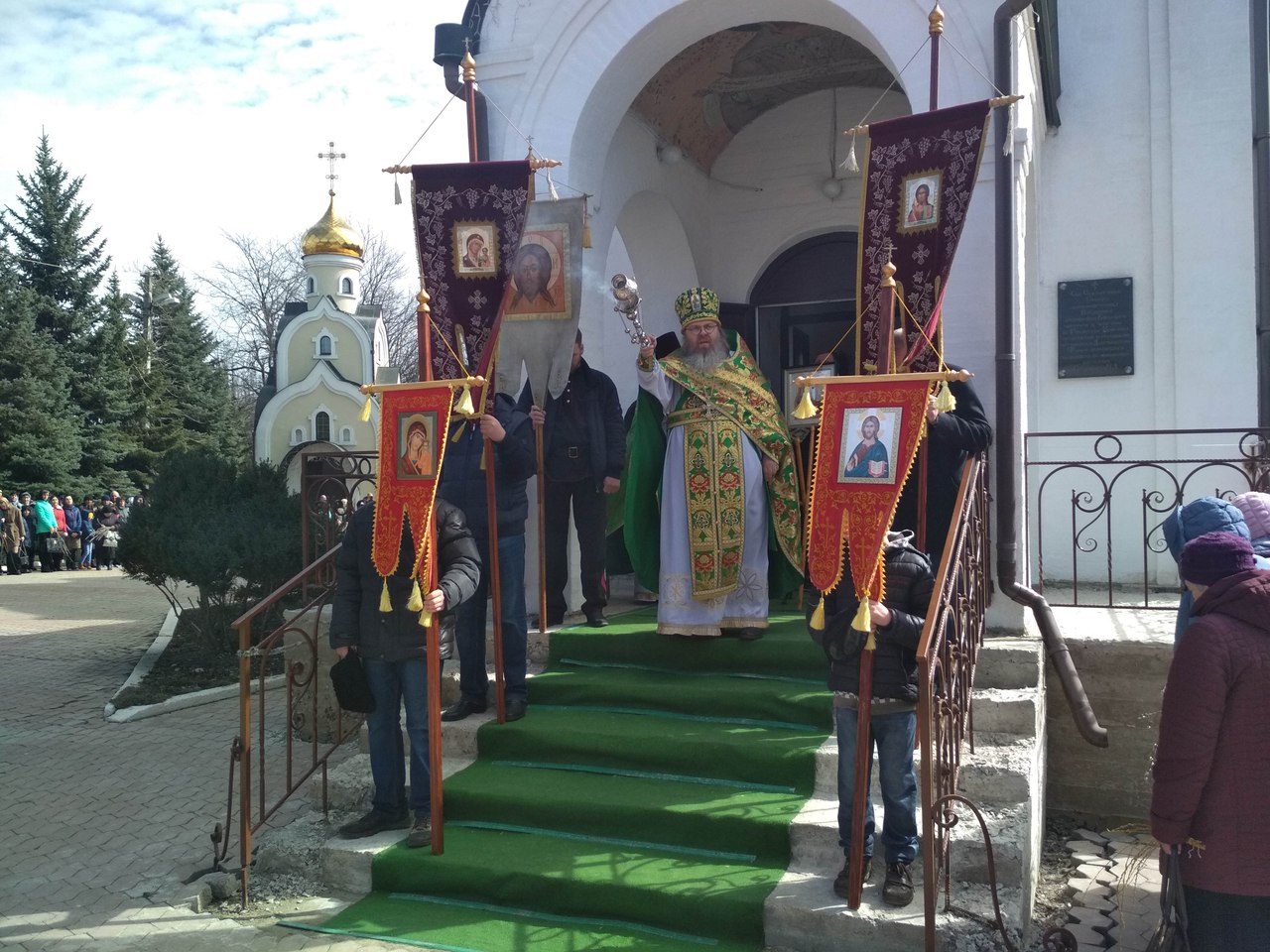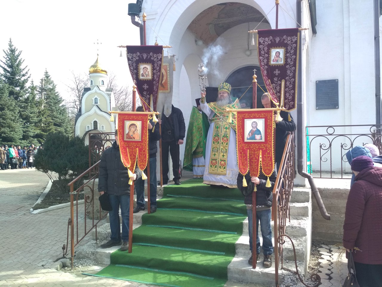 1 апреля Протоиерей, Благочинный Докучаевского округа совершил праздничную литургию и освящение вербы в Свято-Владимирском Храме УПЦ Московского Патриархата Донецкой Епархии.