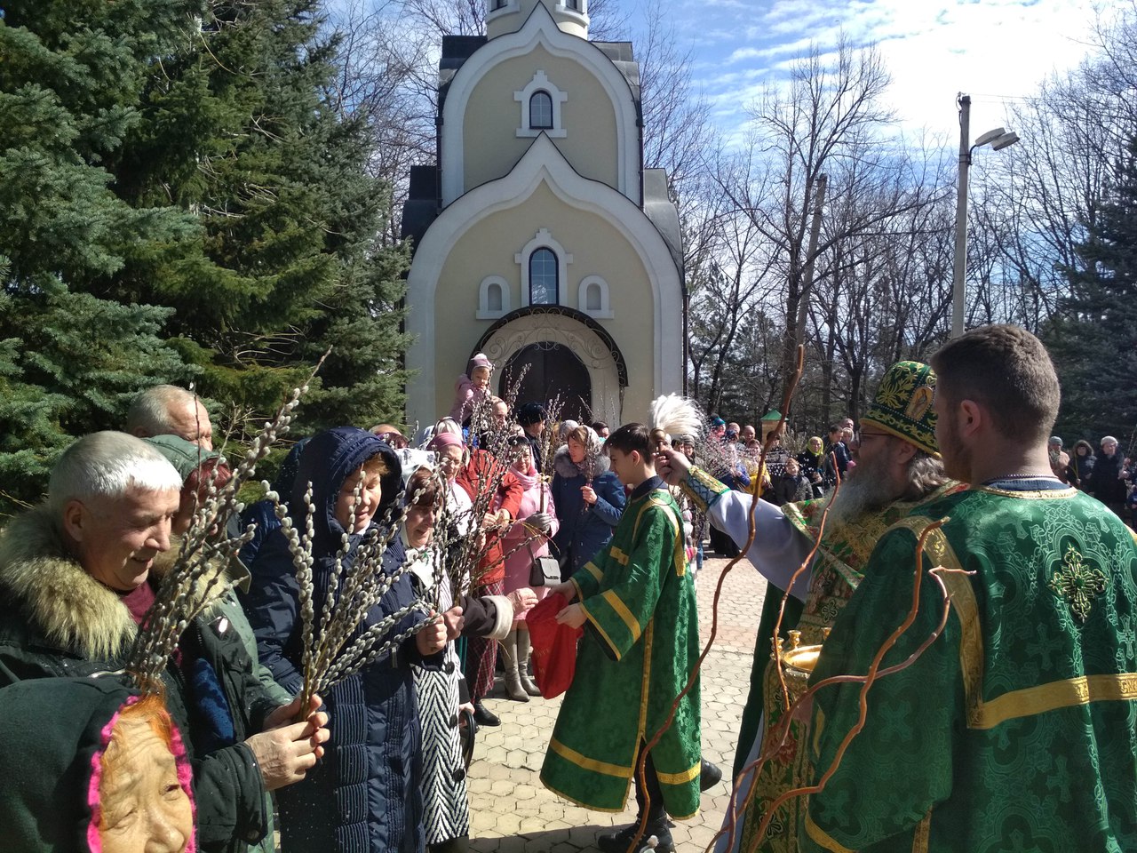 За неделю до Пасхи сотни православных докучаевцев отметили праздник Входа Господня в Иерусалим, в народе называемый "Вербное воскресенье". В Свято-Владимирском Храме с утра собрались несколько сотен человек. Многие пришли семьями.