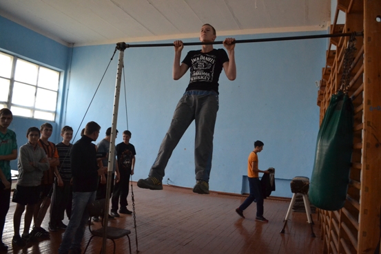 После общения с ребятами, Сергей Николаевич провел соревнования между студентами обоих техникумов по подтягиванию.