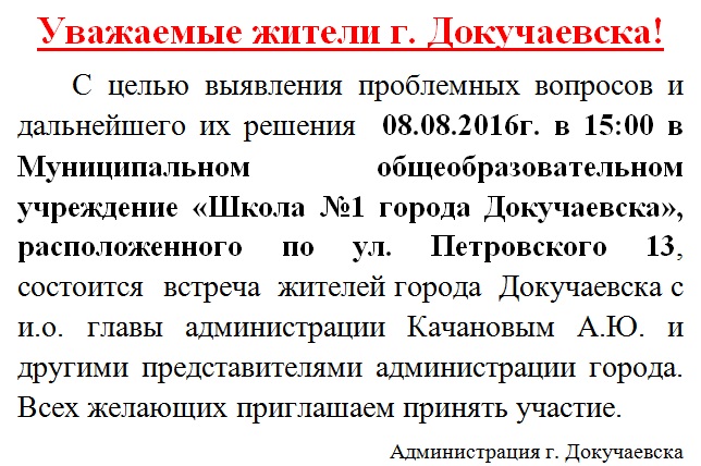 Категория: Информация администрации г.Докучаевска | Просмотров: 391 | Добавил: admga2015 | Рейтинг: 0.0/0