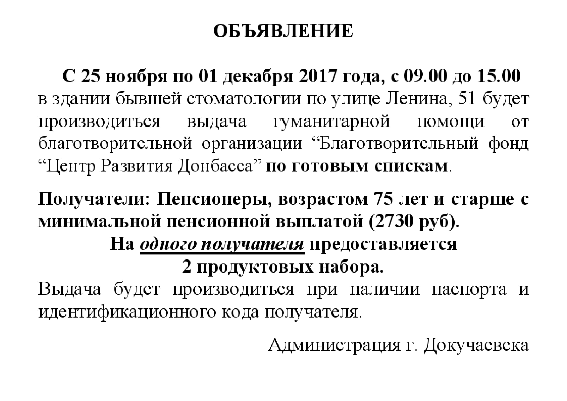 09:33 Выдача гуманитарной помощи с 25 ноября по 01 декабря 2017 г. | |