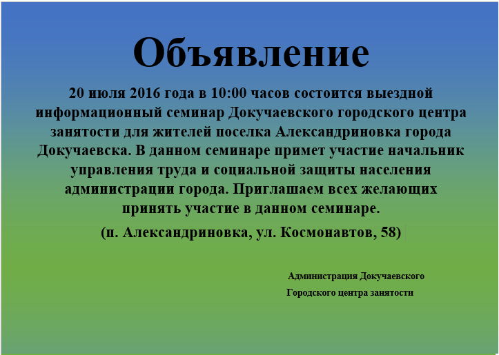 Категория: Информация центра занятости | Просмотров: 491 | Добавил: admga2015 | Рейтинг: 0.0/0