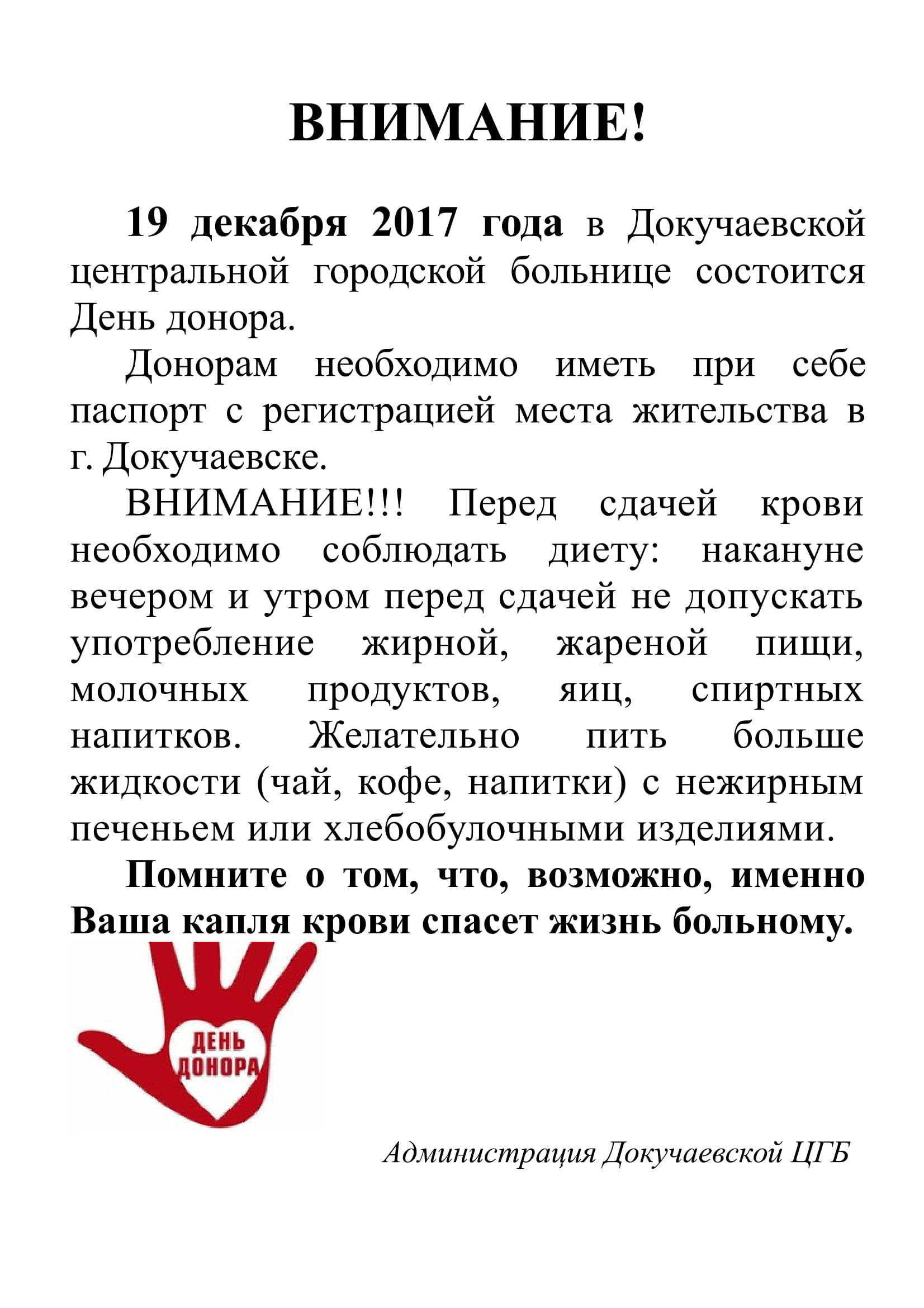 Главная » 2017 » Декабрь » 18 » Завтра - День Донора!